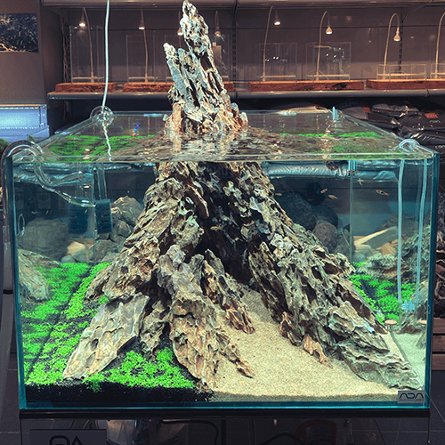 No obstante el acuario es visualmente espectacular e impactante, con un hardscape contundente y llamativo.