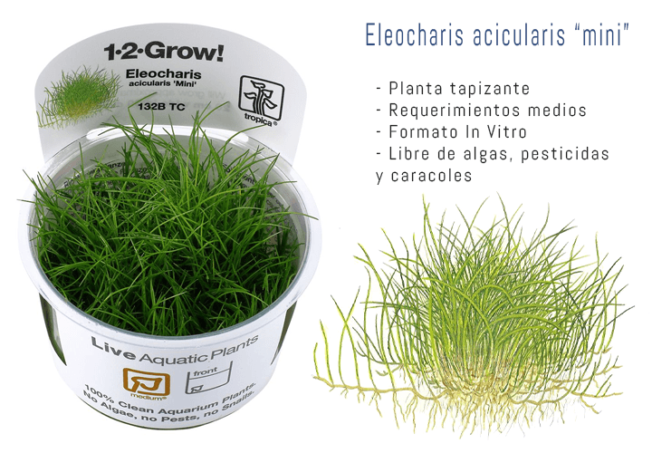 La “mini” es la Eleocharis que presenta un crecimiento más contenido, incluso más bajo que la Eleocharis parvula.