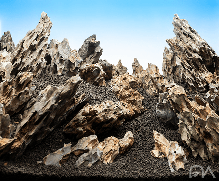 Si quieres imitar paisajes montañosos, cordilleras o un conjunto de montañas la roca que mejor funciona es la Seiryu Stone o Millenium Stone.