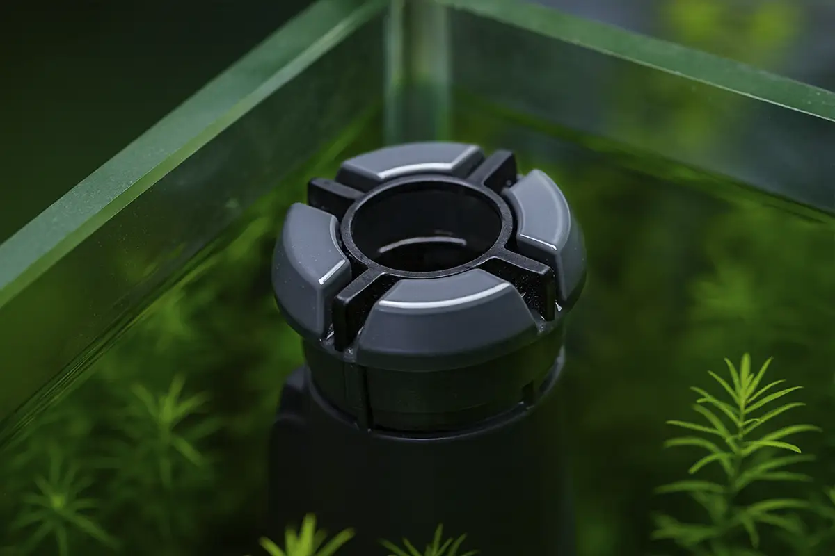 Este aparato es básicamente un pequeño filtro que se dedica exclusivamente a absorber el agua de la capa más superficial del acuario. Al hacerlo, se lleva consigo toda la suciedad, partículas y, por supuesto, el biofilm, devolviendo al acuario un agua limpia y cristalina. El resultado es una superficie totalmente transparente que permite que la luz penetre sin obstáculos.