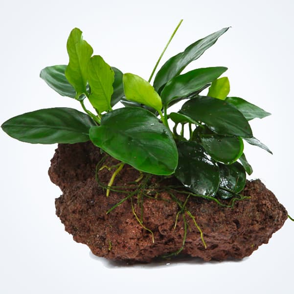 Anubias Barteri Var Nana enraizada en roca volcánica