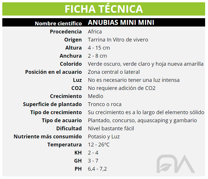 La ANUBIAS MINI MINI es una planta de hoja larga y tonos verdes.