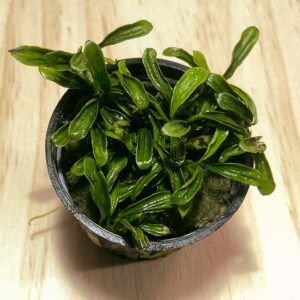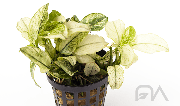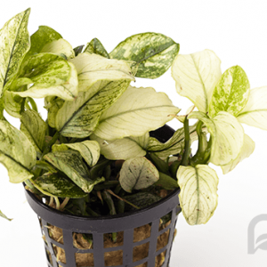 ANUBIAS SP NANA PINTO es una planta acuática de hojas blancas o pardas.