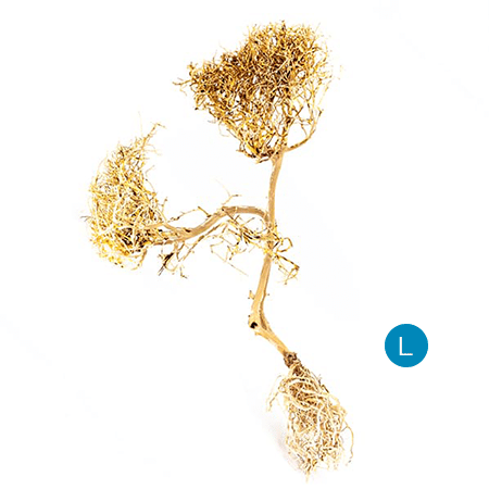 Árbol decorativo acuario Pradera L es una pieza artesanal de madera que imita a un árbol con su copa y sus raíces retorcido por el viento.