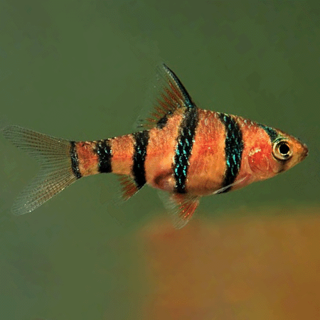 Barbo Pentazona es un pez de acuario popular que se caracteriza por sus cinco rayas verticales negras que corren a lo largo de su cuerpo.