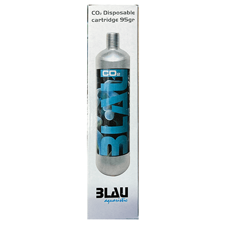 BLAU CARTUCHO CO2 DESECHABLE 95 GR es una bombona desechable para el sistema CO2 NANO SET (sistema completo de CO2 para acuarios de pequeño tamaño, de hasta 90 Litros).