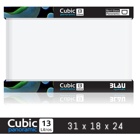 BLAU CUBIC PANORAMIC 13 LITROS es un acuario de cristal con los bordes del frontal redondeados.