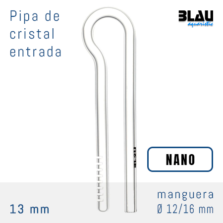 BLAU GLASS NANO INFLOW 13 MM es una pipa de cristal para la entrada de agua del acuario hacia el filtro externo.