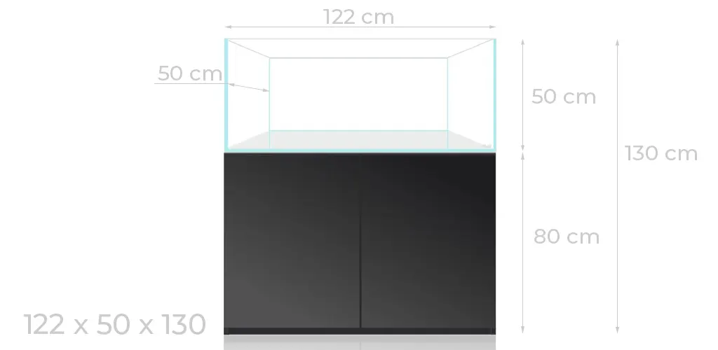 - Tiene un tamaño de 122 x 50 x 50 cm, lo que lo convierte en un acuario ideal para aquascaping, grande y espacioso.