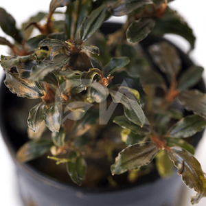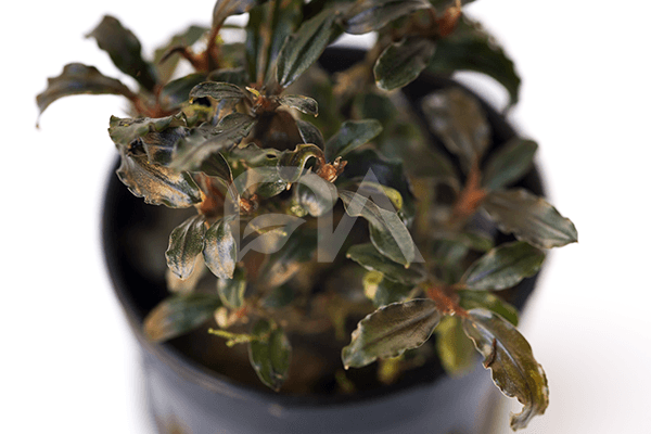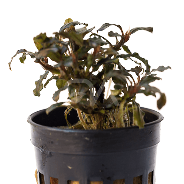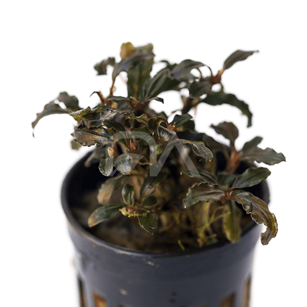 Esta rara especie de bucephalandra se caracteriza por sus hojas estrechas y ligeramente onduladas, además éstas son de colores marrón y rojizo.