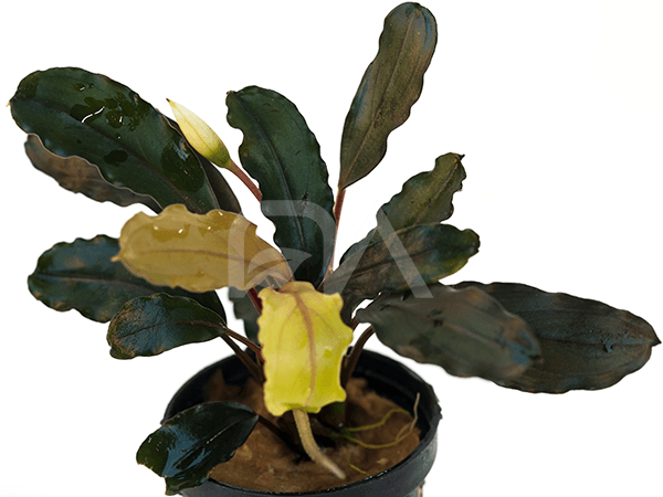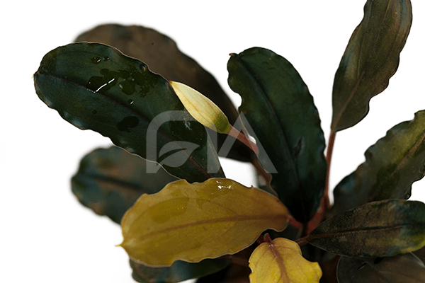 Esta especie rara de bucephalandra se caracteriza por sus pequeñas dimensiones y la coloración de sus hojas que van desde verde botella al verde amarillento, además presenta los bordes ligeramente ondulados.