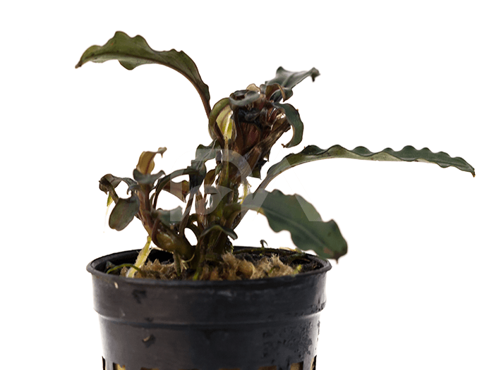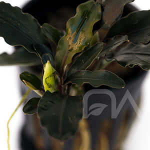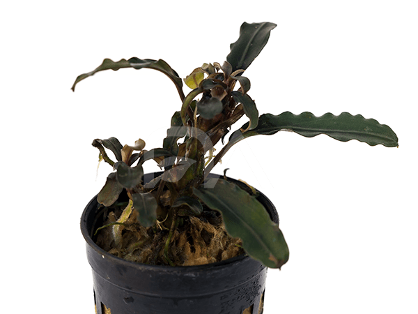 Esta rara especie de bucephalandra se caracteriza por sus hojas de pequeño tamaño con los bordes ondulados. Es de color verde oscuro con reflejos metálicos.