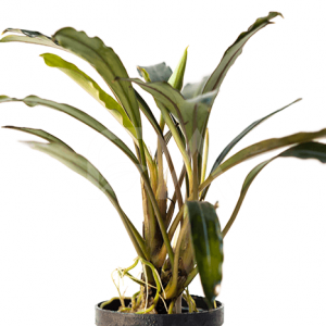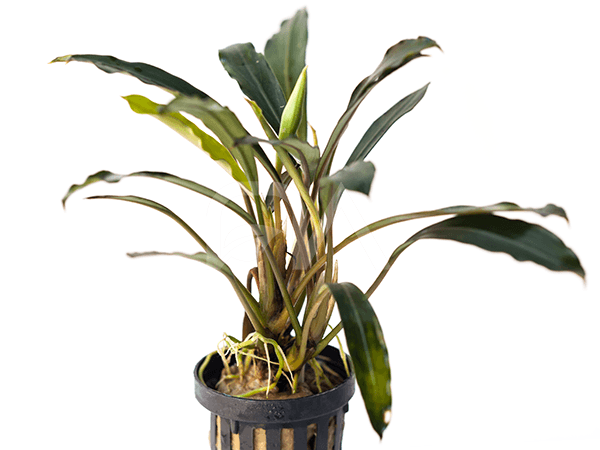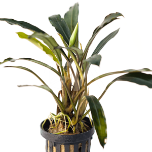 Esta especie rara de bucephalandra se caracteriza por sus hojas y tallos alargados, lo que le confieren un aspecto muy elegante. Es de color verde oscuro con algunas hojas de un tono más claro..
