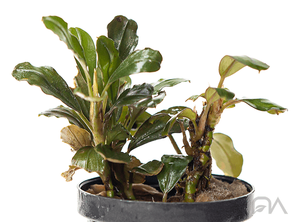 La Bucephalandra LAGOON tiene hojas ligeramente onduladas de color verde intenso.