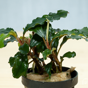La Bucephalandra LALINA GREEN es una hermosa variedad planta acuática de pequeño tamaño con hojas proporcionadas de bordes ondulados y color verde intenso.