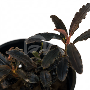 Esta especie rara de bucephalandra se caracteriza por sus diminutas proporciones. Es de color verde muy oscuro con las hojas de bordes ondulados.