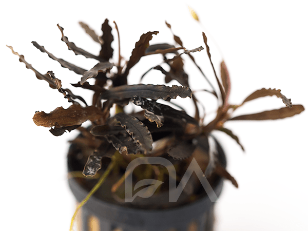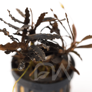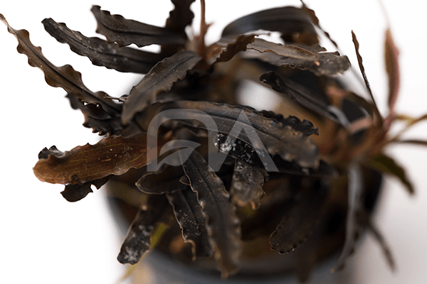 Esta especie rara de bucephalandra se caracteriza por sus hojas alargadas de color marrón, además presentan los bordes ligeramente ondulados.