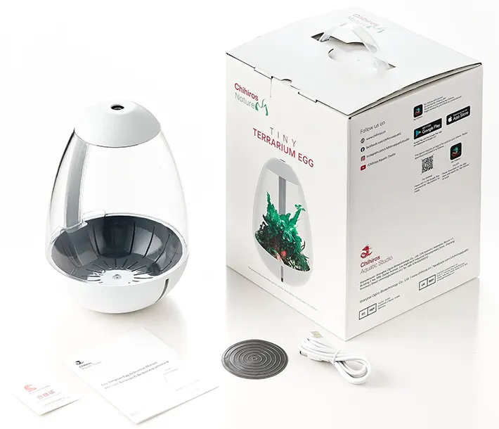 Chihiros tiny terrarium egg es un terrario de pequeño tamaño ideal para decorar cualquier espacio de tu casa.