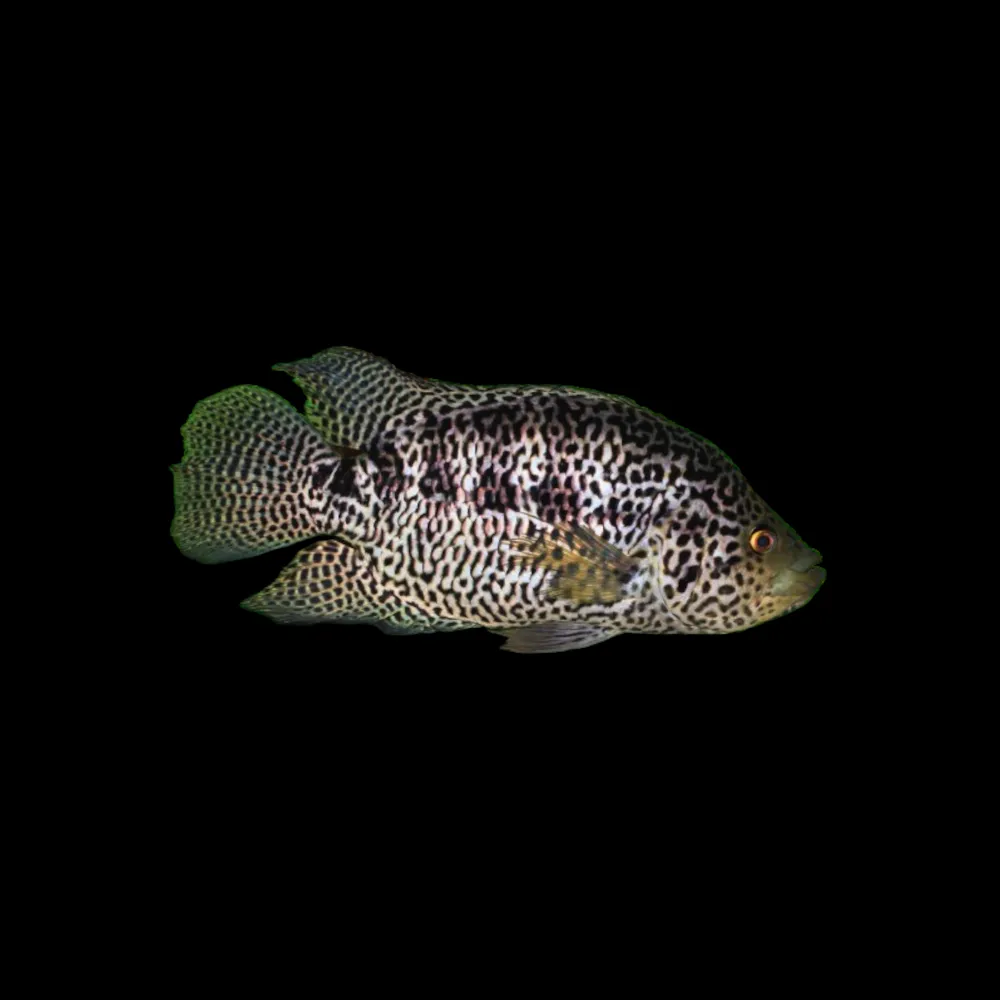 Su apariencia moteada, que recuerda al diseño de un jaguar, lo convierte en el centro de atención de cualquier acuario.