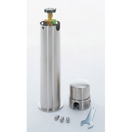 La cubierta de acero inoxidable mantiene tanque de CO2 de forma segura en posición vertical.