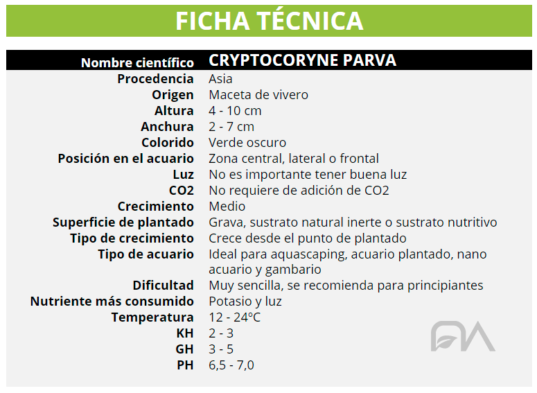La CRYPTOCORYNE PARVA es una de las Cryptocoryne más pequeñas.