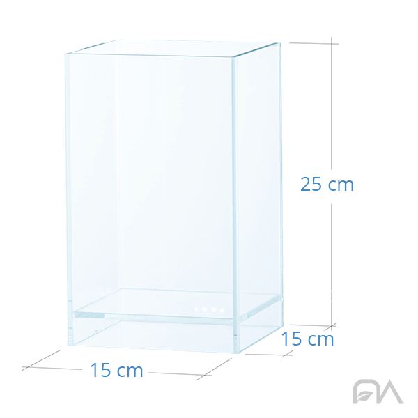 El NEO GLASS AIR de 15x15x25 de la marca DOOA es un pequeño acuario con un espacio abierto bajo el cristal inferior.