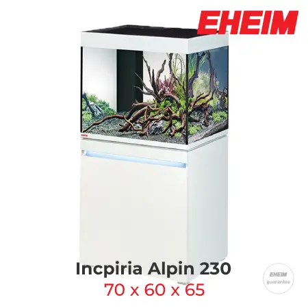 EHEIM Incpiria 230 Alpin es un acuario con mesa en color blanco que incluye una potente iluminación y optimizado para incorporar un filtro externo.