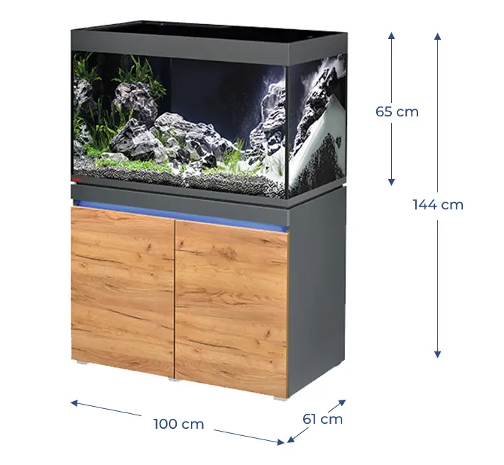 EHEIM Incpiria 330 Grafit Nature es un acuario con mesa en color Grafit Nature (antracita brillante) con el frontal de la mesa en tono madera, que incluye una potente iluminación y está optimizado para incorporar un filtro externo.
