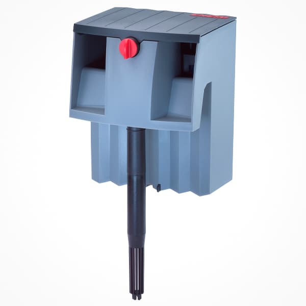 El filtro de mochila se cuelga directamente del borde del acuario.