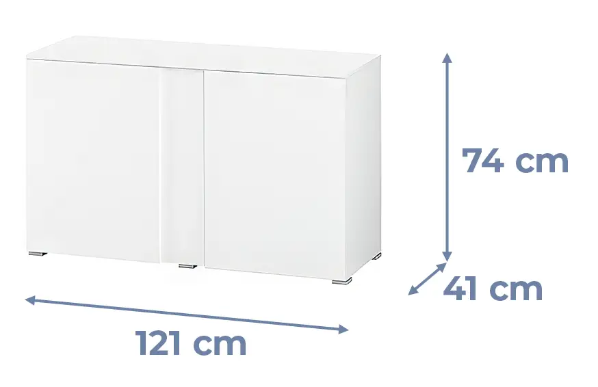 - Dimensiones: El mueble tiene unas dimensiones de 121 cm de ancho, 41 cm de fondo y 74 cm de alto, proporcionando un soporte robusto y adecuado para acuarios.