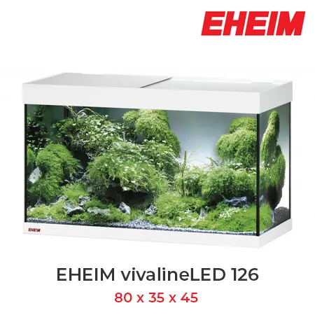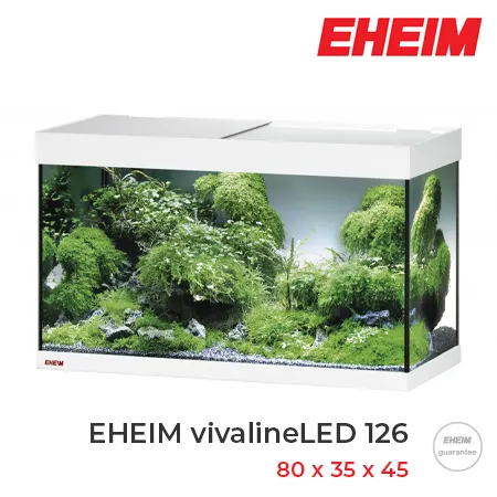 EHEIM Vivaline LED 126 Blanco es un acuario con tapas correderas que además incluye iluminación LED, calentador y filtro externo.