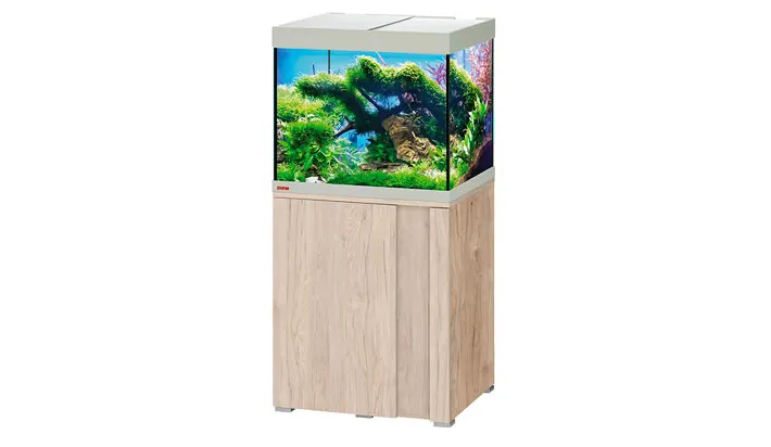 EHEIM Vivaline LED 150 Pino con mesa es un acuario con tapas correderas que además incluye iluminación LED, calentador y filtro externo.