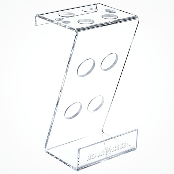 AQUA REBELL TOOL STAND es un estante para utensilios y herramientas de aquascaping fabricado en metacrilato transparente de alta calidad.