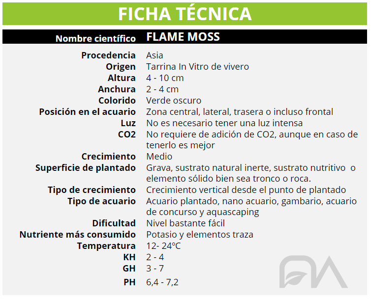 La FLAME MOSS es un musgo de agua dulce muy utilizado para las zonas traseras.