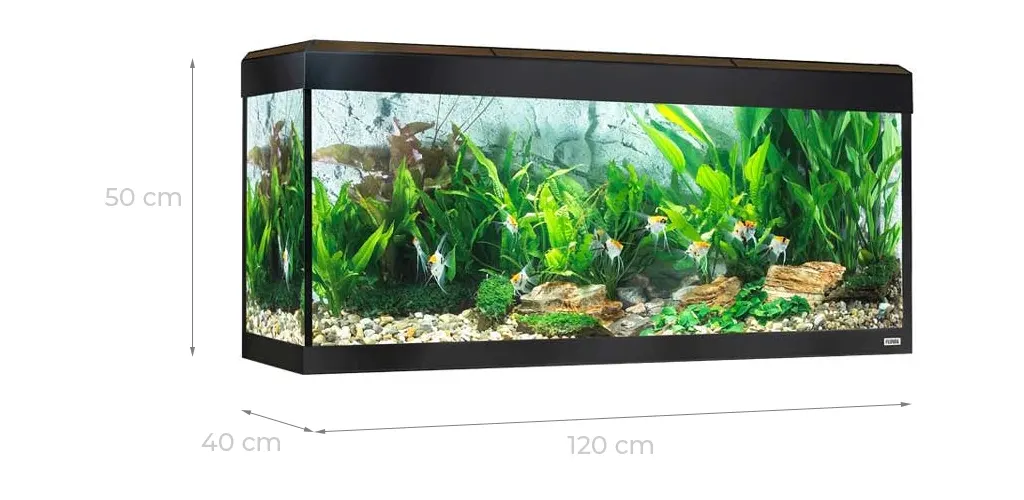 Fluval Roma 240 LED nogal es un acuario con una capacidad de 240 litros y unas dimensiones de 120x40x50, e incluye todo lo necesario para la puesta en marcha.