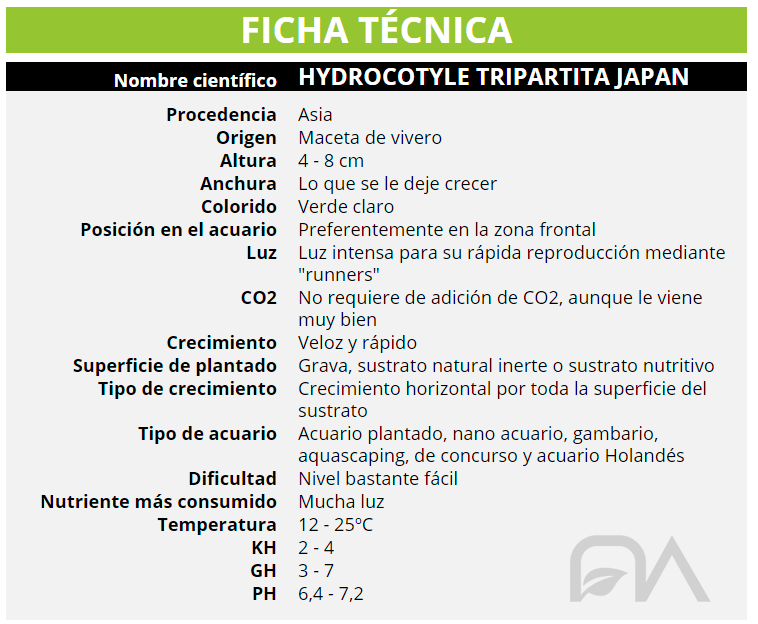 La HYDROCOTYLE TRIPARTITA JAPAN es una de las plantas que más gusta a los aficionados por la forma de la hoja tipo perejil.
