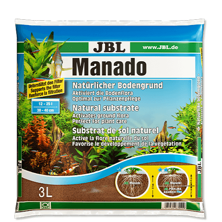JBL Manado 3 litros es un sustrato nutritivo ideal para el cuidado de plantas, formulado para acuarios de agua dulce.