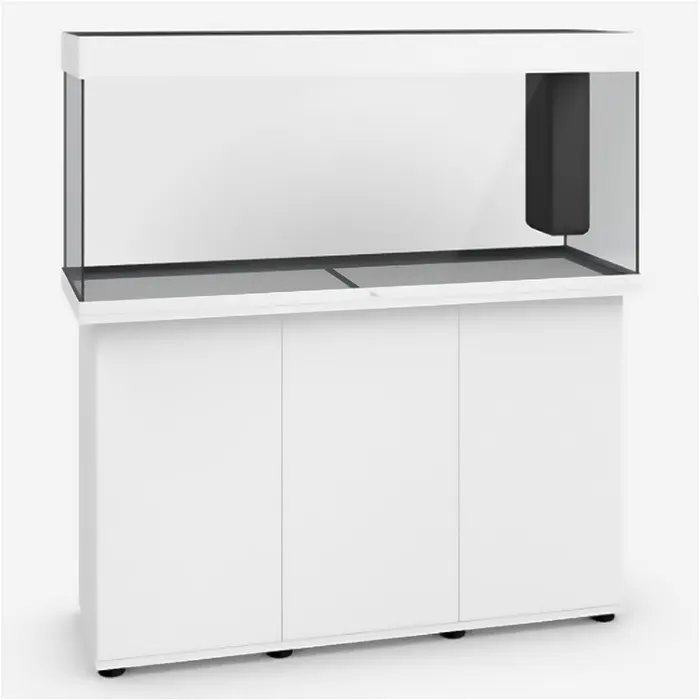 Mesa a juego incluida, del mismo color blanco que el acuario.