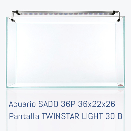 KIT STRIDEWAYS SADO 36P es un set de acuario de cristal óptico y pantalla TWINSTAR LED RGBW 30B, ideal para acuarios plantados y de aquascaping.