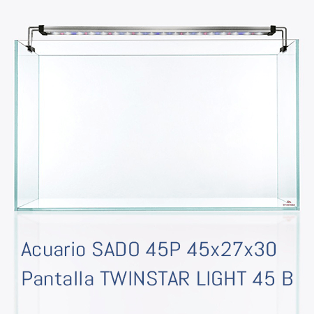 KIT STRIDEWAYS SADO 45P es un set de acuario de cristal óptico y pantalla TWINSTAR LED RGBW 45B, ideal para acuarios plantados y de aquascaping.