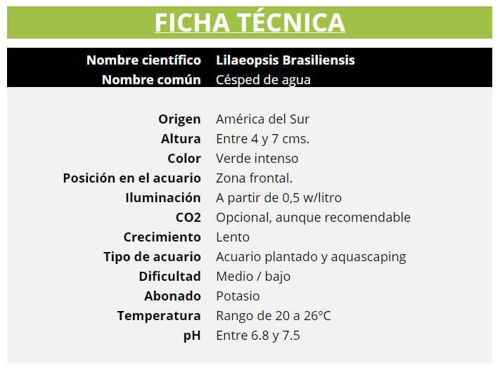 La LILAEOPSIS BRASILIENSIS es una planta acuática que se utiliza como tapizante.