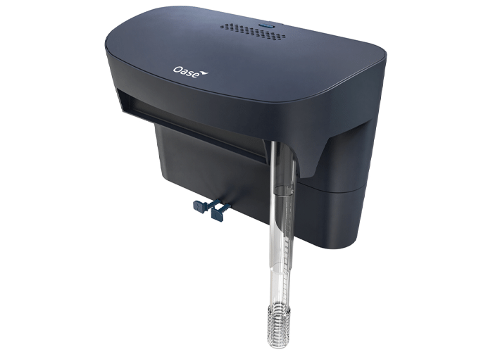 OASE BioStyle FILTRO MOCHILA 180 AZUL OSCURO es un filtro de cascada con caudal regulable que favorece el intercambio gaseoso en la superficie del acuario.