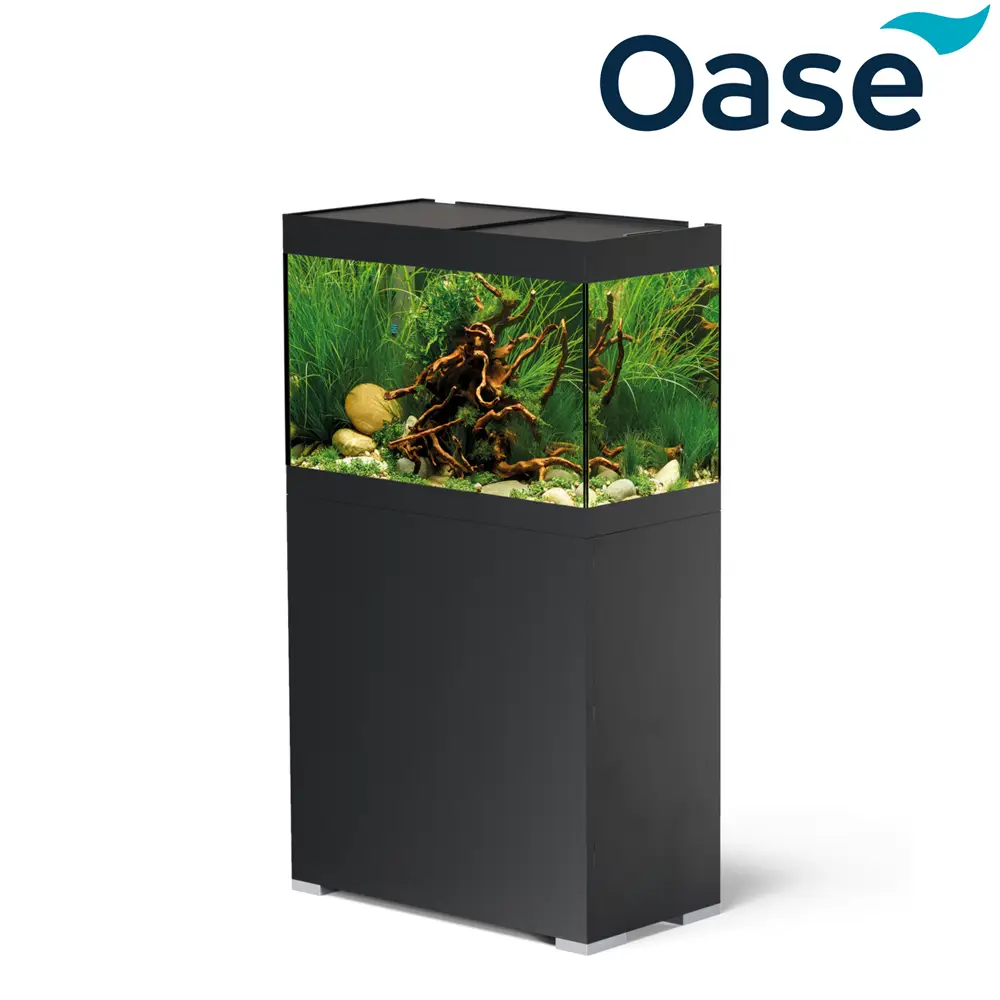 El set completo de Oase incluye todo lo que necesitas para empezar: un mueble con un amplio espacio de almacenamiento, una urna de cristal y toda la tecnología correspondiente.
