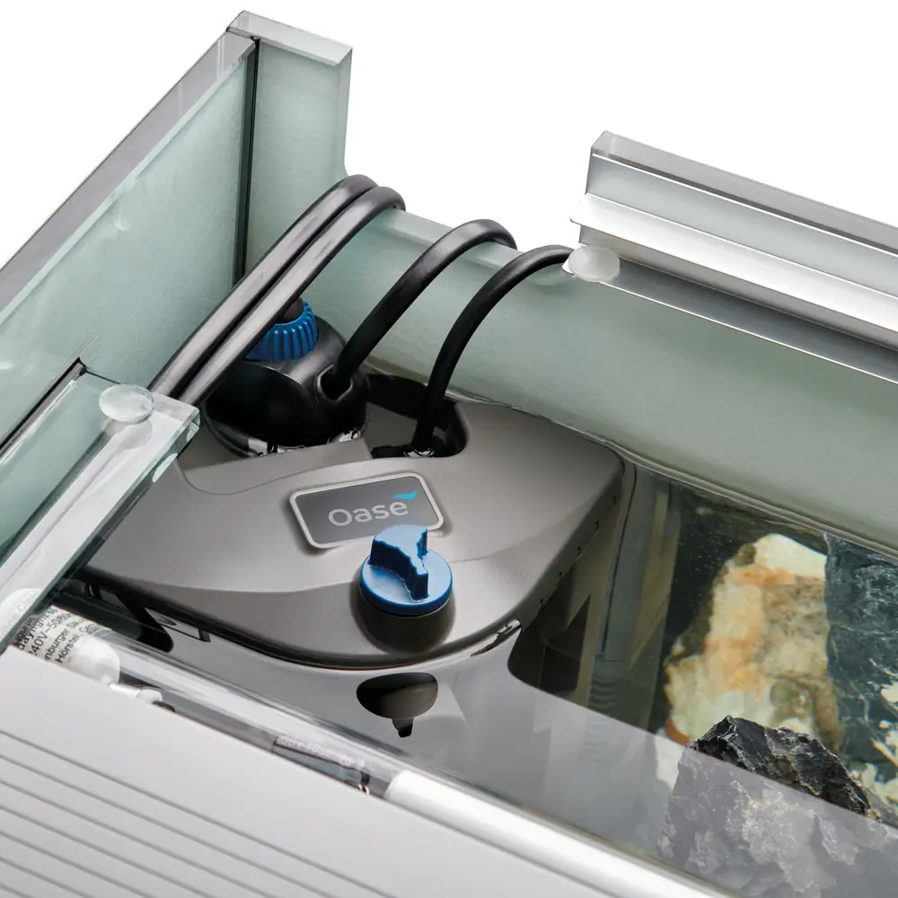 El set completo de Oase incluye todo lo que necesitas para empezar: un mueble con un amplio espacio de almacenamiento, una urna de cristal y toda la tecnología correspondiente.