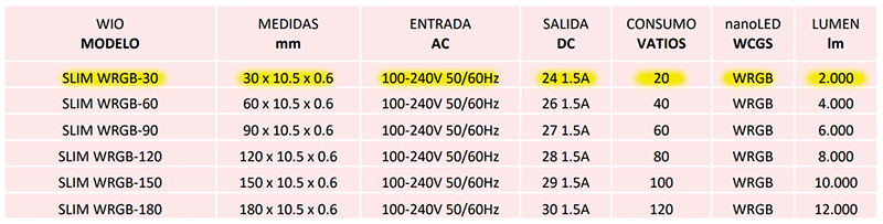 CARACTERÍSTICAS TÉCNICAS DE LA PANTALLA LED WRGB SLIM 30