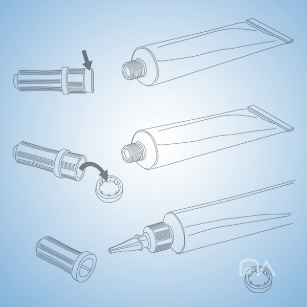 Incluye un capuchón con una pequeña aguja que queda dentro de la punta dispensadora, con lo cual el producto no se nos secará entre un uso y otro.
