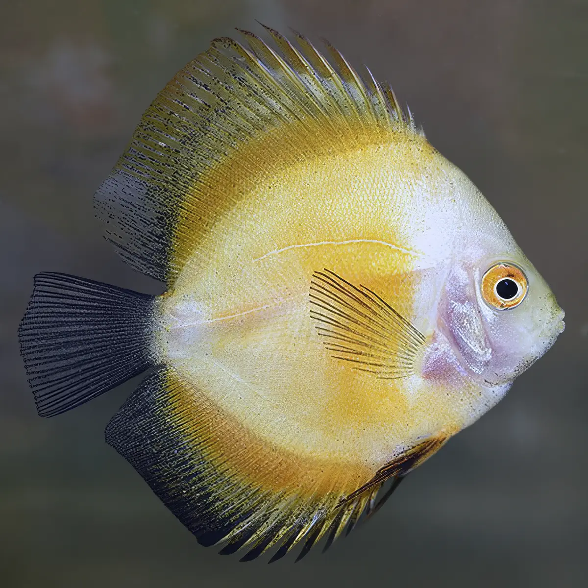 El Pez Disco Yellow Marlboro es una variedad de disco de colores intensos y forma redondeada que destaca en cualquier acuario plantado por su elegancia natural.