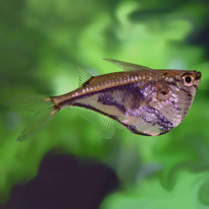 El Pez Hacha Común es pacífico y tímido, lo que lo convierte en un excelente compañero para acuarios comunitarios.