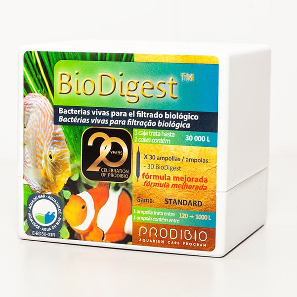 Prodibio BioDigest 30 ud es un concentrado de cepas bacterianas específico para la limpieza biológica de tu acuario.