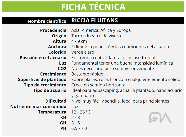 La RICCIA FLUITANS es una planta flotante que no requiere de adición de CO2.